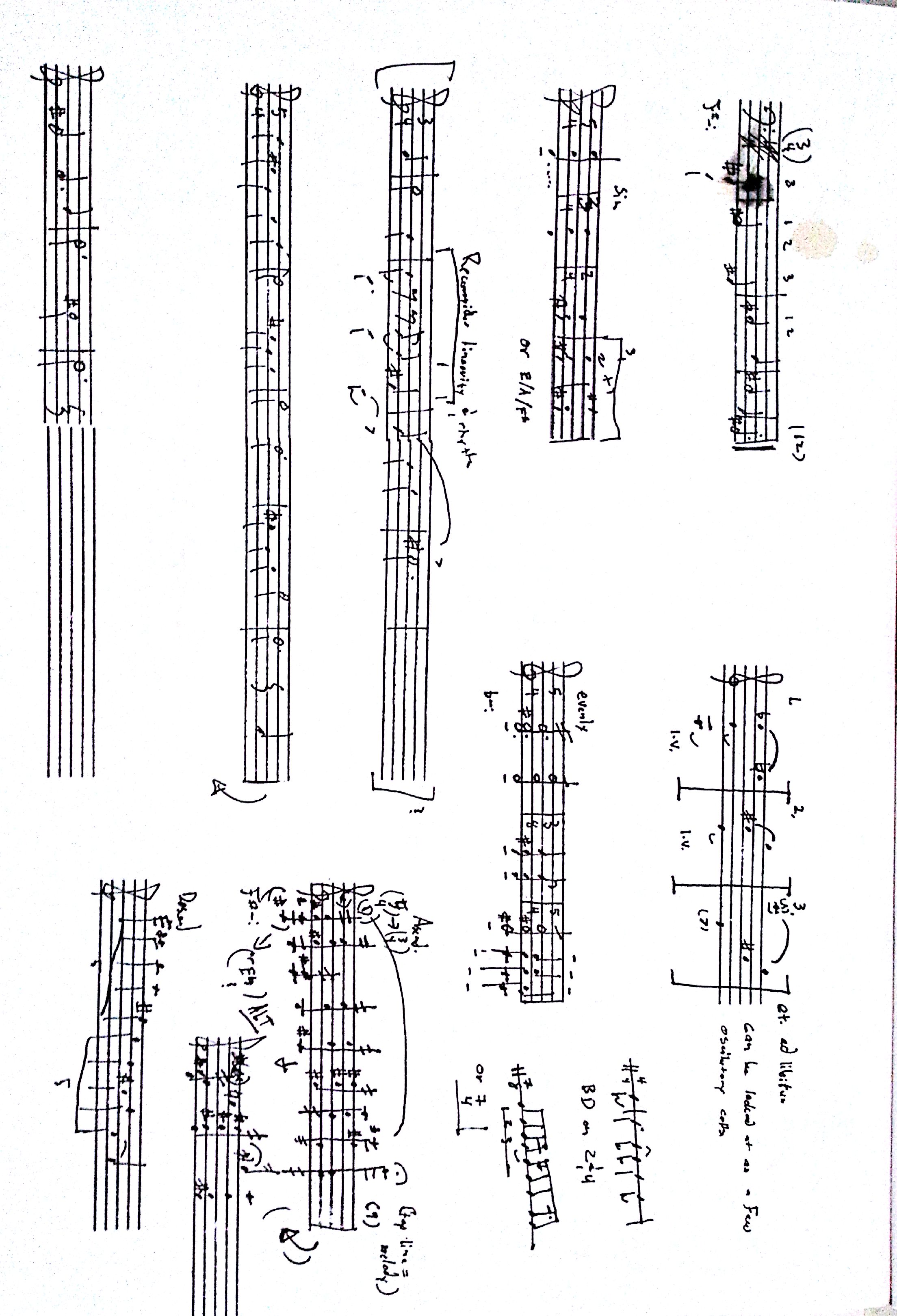 The work uses the notational style that was developed through the Isthmus series. The original working sketch is presented on this page.