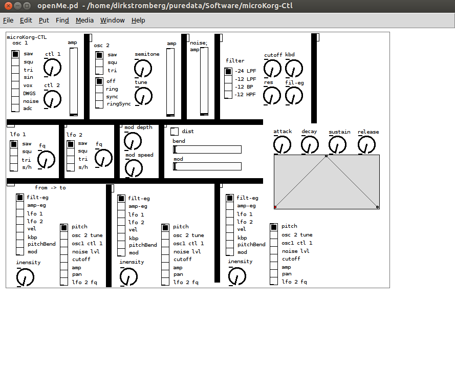 This is a screenshot for my new micoKorg interface. This allows for an analog like interface for the hardware. This then could be used to work with other kinds of controllers.