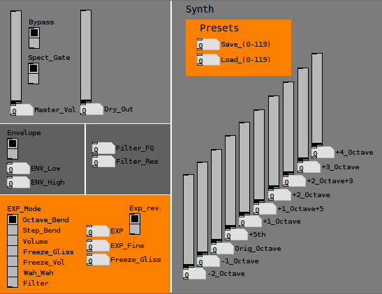 The following is a puredata patch to control EHX’s Hog2 via MIDI with puredata. This allows for computer control of the processor. The software allows for complete control of the following: